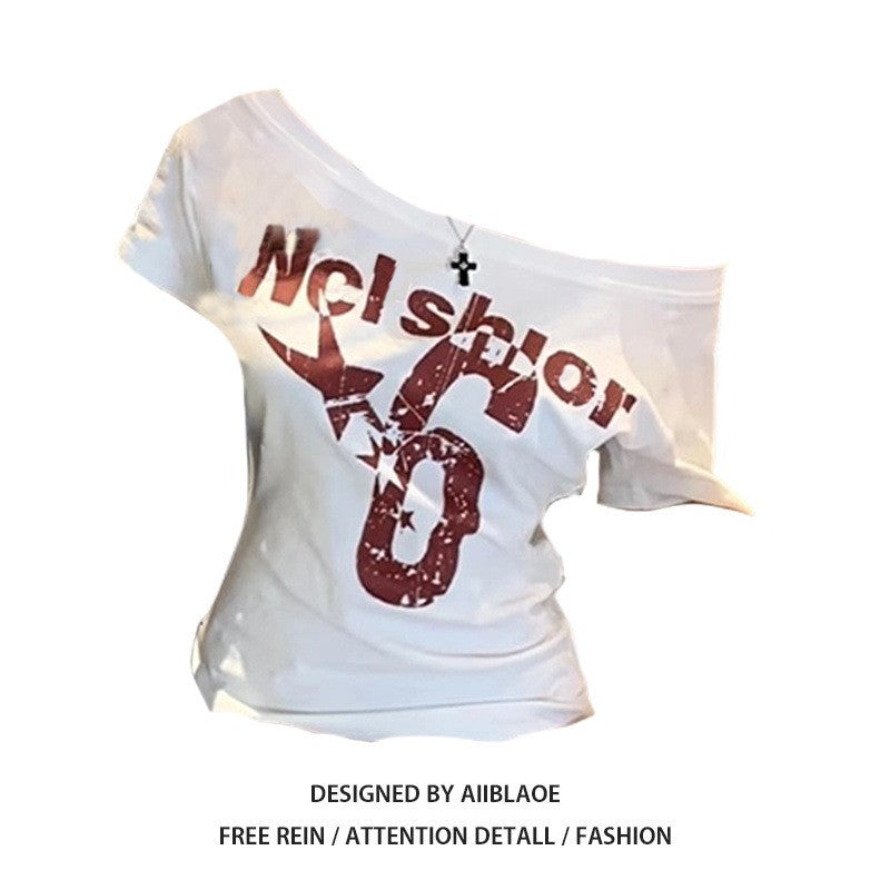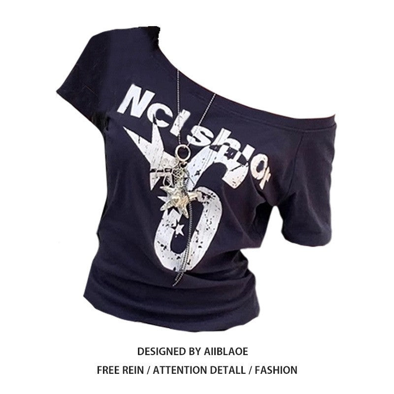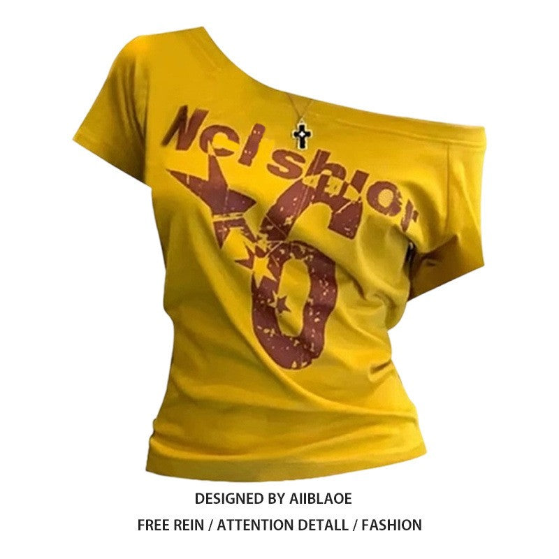 Details: • Fabric: Cotton • Neckline: One-shoulder • Sleeve: Raglan short sleeve • Fit: Slim • Colors: Yellow, navy, white, gray • Sizes: S-XL (weight-based recommendations)